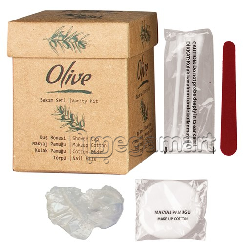 2 makiyaj pambıq yastığı, 1 duş papağı, 3 pambıq qulaq təmizləyən, 1 törpü