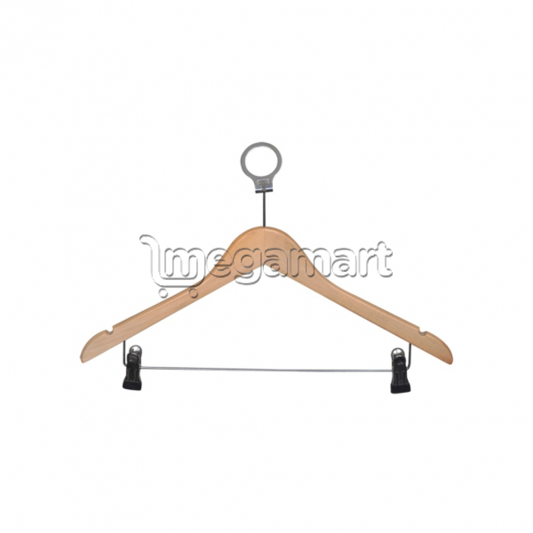 Ammenities - Amenities PL Printed Wooden Clothes Hanger with Clips / Taxta Paltar Asqısı Klips ilə, Otel üçün (PX HAMN-162) - Qiymət: 6.71 azn