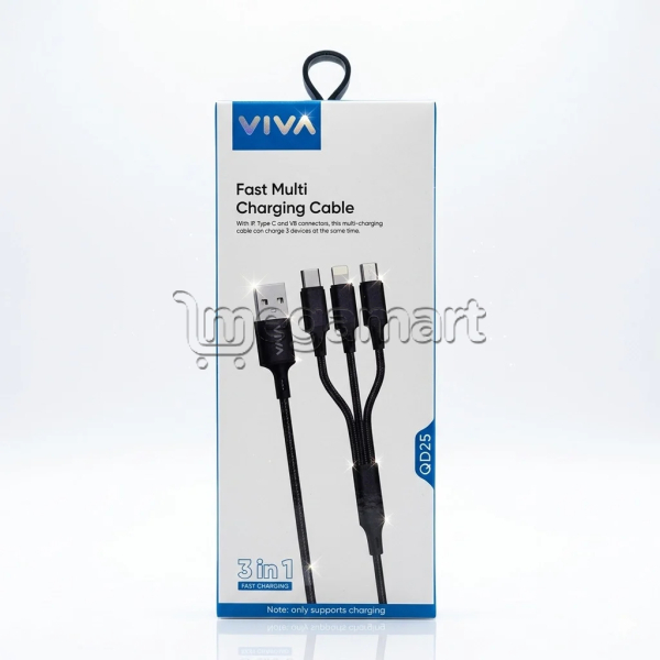Kabel-şaxələndirici Viva QD25 3in1 — şarj və məlumat ötürülməsi üçün universal həll.