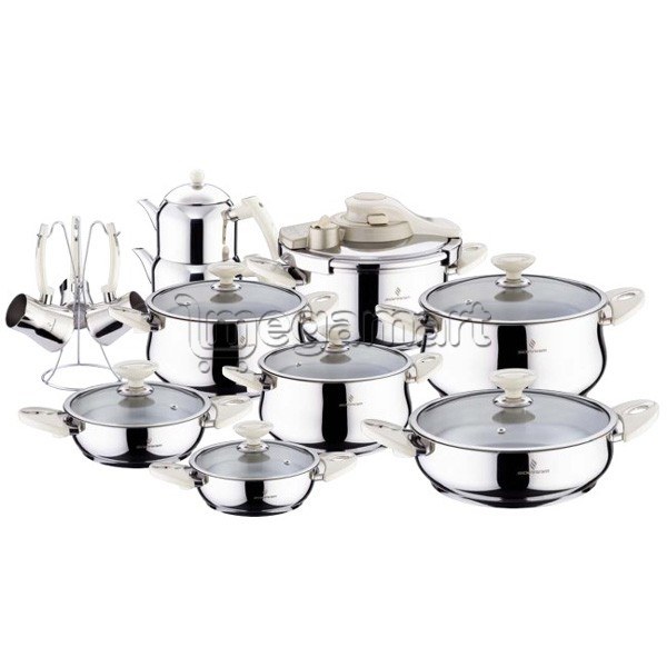 | Описание | 1 шт. сковорода омлет - 18 см 1 шт. сковорода омлет - 20 см 1 шт. кастрюля - 2,3 л. 1 шт. кастрюля - 3,2 л. 1 шт. кастрюля - 5,5 л. 1 шт. сотейник - 3,0 л. 1 шт. скороварка - 5,5 л. 1 шт. набор для чая 1 шт. набор турок Полированная поверхность Нержавеющая сталь 18/10 Cr-Ni |