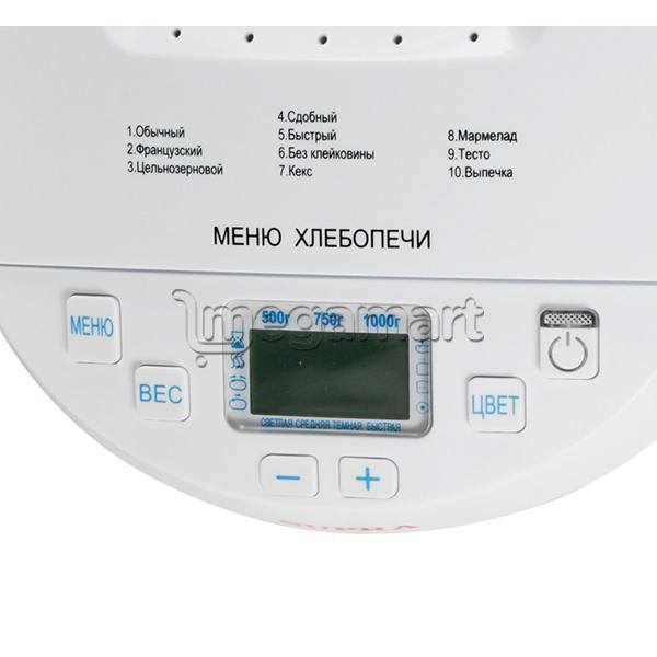 Gücü - 650 Vt. Bişirmənin maksimal çəkisi - 1000 qr. Bişirmə çəkisinin tənzimlənməsi. Qabığ rənginin seçməsi. Bişirmə forması - kömbə. Taymer - 13 saada qədər. Korpusun materialı - paslanmayan polad. Bişirmə proqramların sayı - 12. Xəmir yoğurması